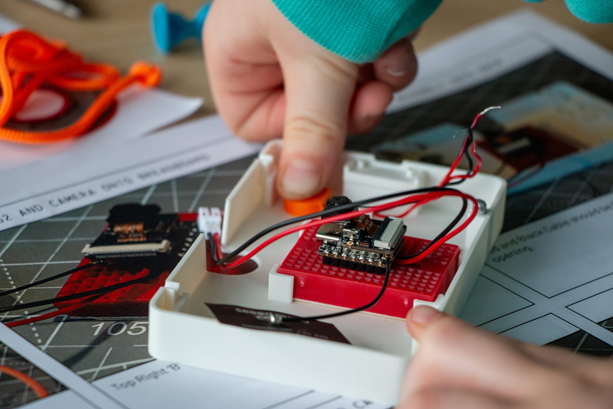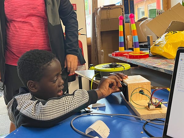 Behind the scenes, Henry has been working with genius designer and technologist, Tommy Dylan, to develop working versions of the technologies the young members are designing. We hope to develop these into open-source projects that young people can build on their own, beyond our current participant groups. In Walker, Henry got the chance to test an early version of the design for some interactive cameras with young members. Kids Kabin were about to follow the instructions to connect all the electronics needed, and then assemble the 3D cases around each camera, getting them up and running. These simple cameras allow kids to take photos of their creative work from their youth projects and upload them to a secure server where they can be approved before being turned into AI field-reports for the other groups to decipher. The group had lots of feedback to take on board for future versions of the design!