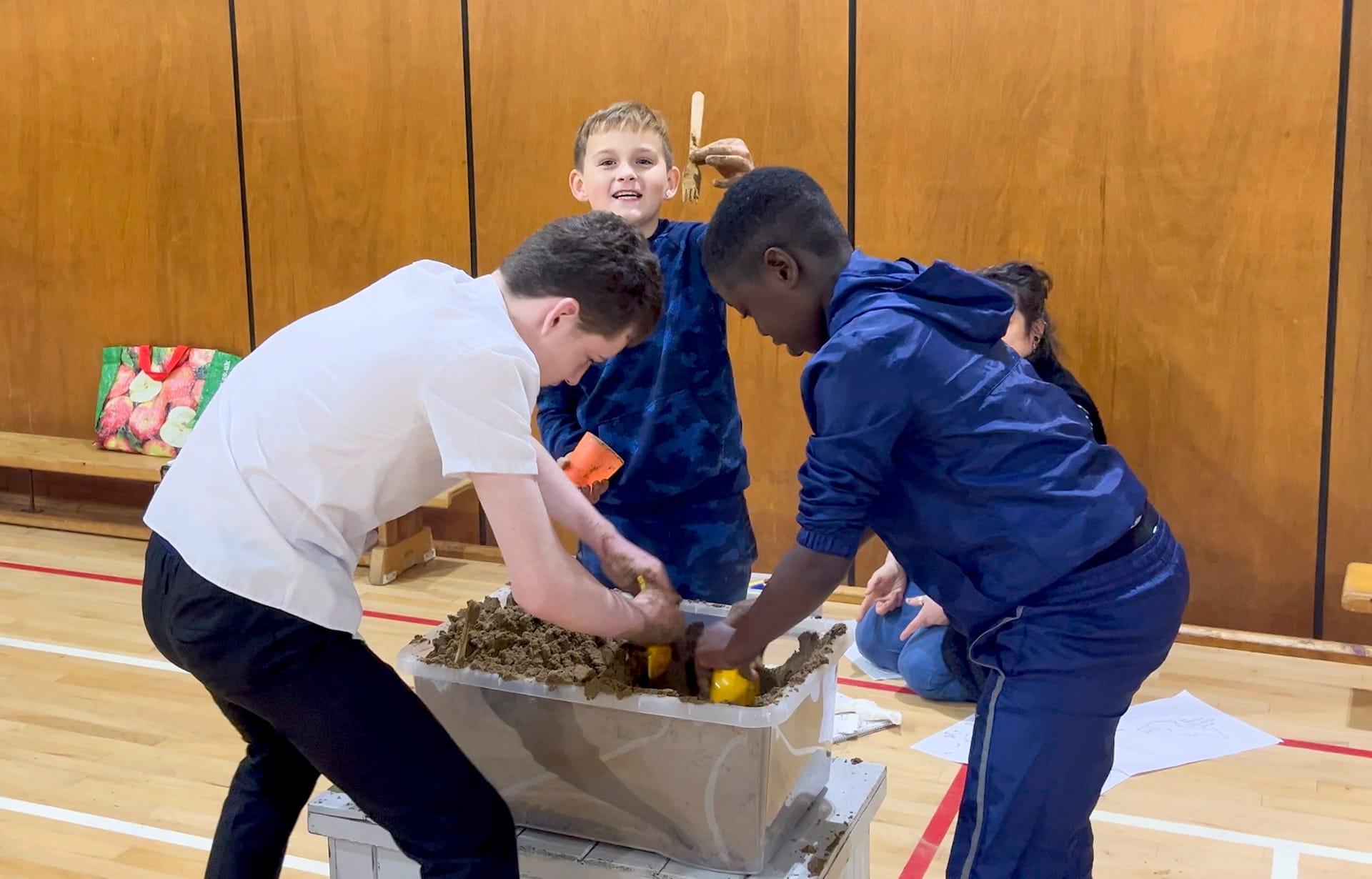 With 21 young participants and support from Redesdale Archaeology Group, Newcastle University volunteers, and Kids Kabin staff, the evening was a bit of a whirlwind of learning and getting to know each other. The kids dove into a range of engaging activities, including stone carving, Roman tile making, pizza making, and digging-up 3D printed replica artefacts. Highlights included building a giant Roman(ish) catapult - where flying cabbages stole the show - and the calm, focused creativity at the clay-making station. The variety ensured something for everyone, balancing high-energy and quieter moments. Bob, Keith, and Annette from RAG even brought along some real archaeological finds for the kids to see up close, and interact with.