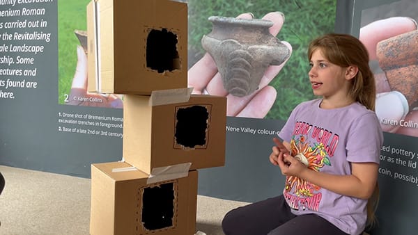 We spent the day at The Roundhouse with cardboard, tape, and a lot of ideas. Our mission: design new furniture. Some of us built something tall enough to hold a Roman helmet - so you could look a soldier in the eye. Others stacked offset boxes with little cut-outs for precious objects. We tried out big shelves for displaying lots of things at once, and low tables where you could sit, gather round, and peek inside. Someone even came up with a cabinet with a slanted window, so you can look down onto coins as if they’d just been dug up.